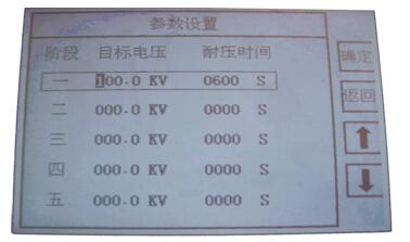 3.目标电压或耐压时间有一个设置为零不允许进入下一阶段进行设置,并且认为此阶段以及后面阶段均无效。